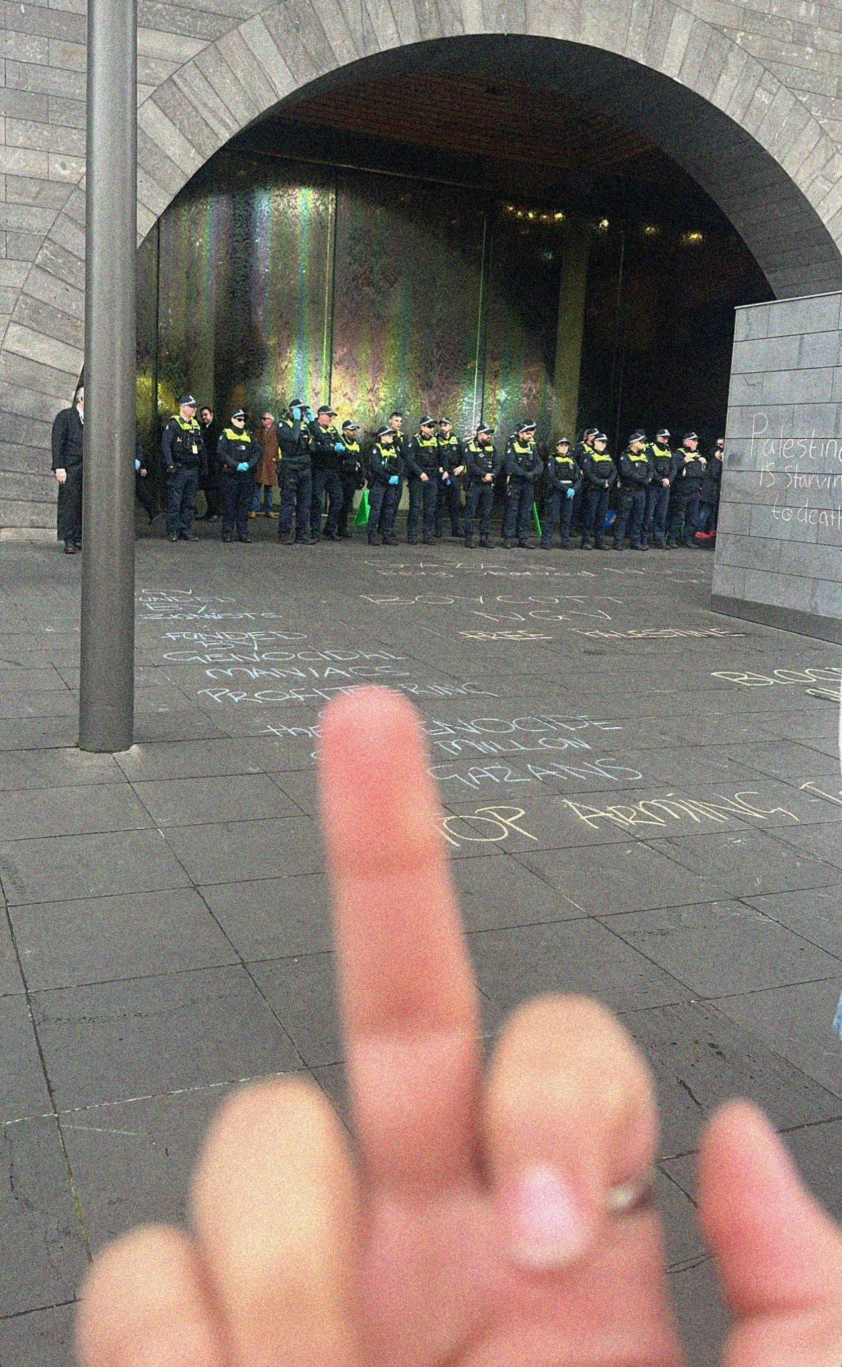 • NGV security has been instructed to prevent keffiyehs or any clothing or accessories signifying Palestinian solidarity from entering the building. Visitors to the gallery have been told to remove or cloak these items.